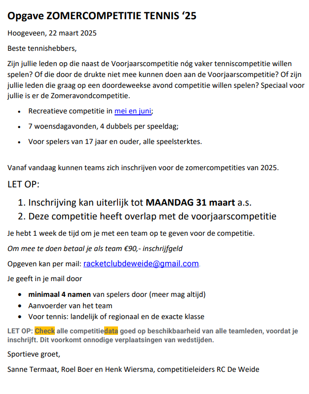 Opgave zomercompetitie